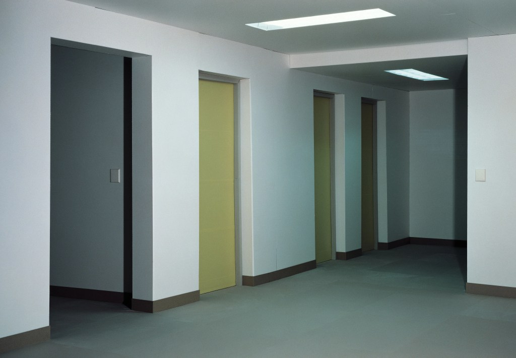 THOMAS DEMAND The work I do, I have to activate the objects to tell a story, or at least create curiosity of how these objects come together and why they make sense together. When I saw Severance, the corridors, the indirect lighting always fascinated me. You go down a Manhattan street at midnight, and there’s still, like, six or seven offices lit, probably for the cleaner or something, but you don’t see them. So, you always look up into the light, into the neon ceiling with whatever random pattern, but there’s always something going on. It’s never just a ceiling or a box, like in [Jacques Tati’s film] Playtime. The whole plot, as I understand it, is pretty depressing but [the show] doesn’t make it unattractive. It’s all trying to prove how terrible the future is, but it still has some attraction. There’s still color, like there’s always one-bleed color, like a dark green or something, and then a lot of white walls. so it actually is an enormous attraction in terms of composition.