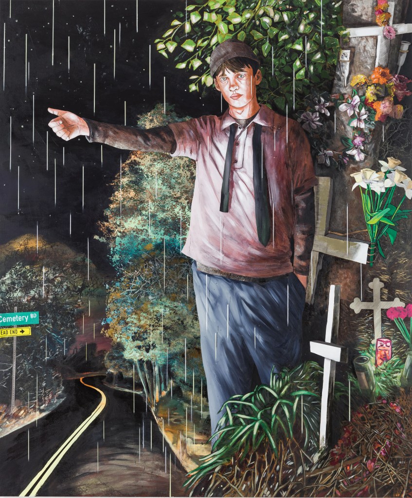 For nearly three decades, Miami-based artist Hernan Bas has created narratively rich tableaux that use humor to unsettle the familiar, exposing the surreal and absurd elements that lie hidden within ordinary life. Often featuring one or more young male figures caught in the midst of unfolding events, Bas draws from a wide array of references, including youth culture, mythology, art history, television, literature, poetry, the occult, the history of queer activism and religion.