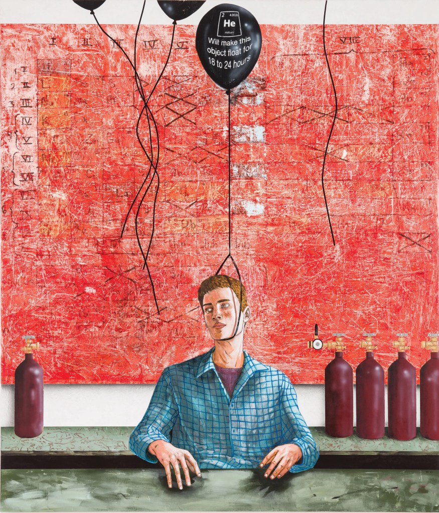 HERNAN BAS Conceptual artist #21, 2023, acrylic on linen, 72 x 60 x 1.25″. Photo by Silvia Ros. Courtesy of the artist and Lehmann Maupin, New York, Seoul, and London