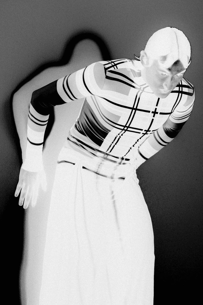 Ben wears dress by Loewe and shoes by Saint Laurent by Anthony Vaccarello.