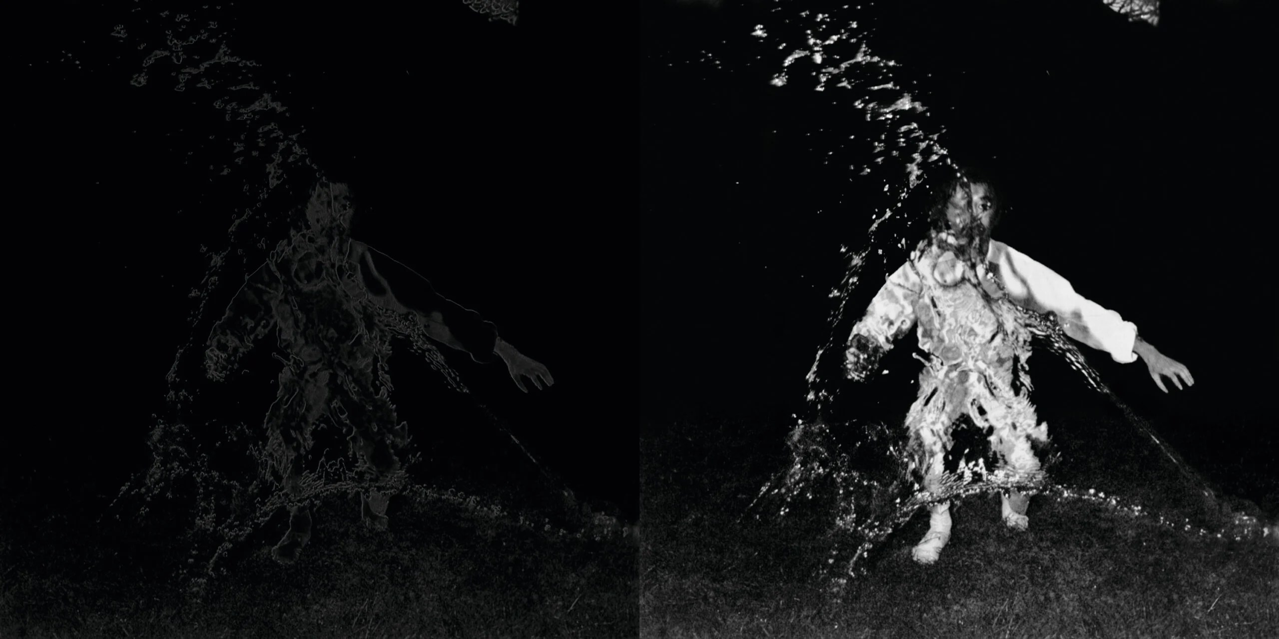 The second one I did in 1959. It’s an important year because it’s when Yves Klein did “Leap into the Void.” The sun is setting and I’m wearing all white silk and the Hasselblad is on automatic and I throw a glass of water at it.
