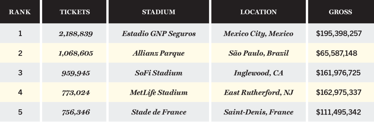 The stadium business, as evinced by Pollstar’s 3Q charts, is decidedly an international one with three of the top five stadiums with the highest attendances outside the U.S.