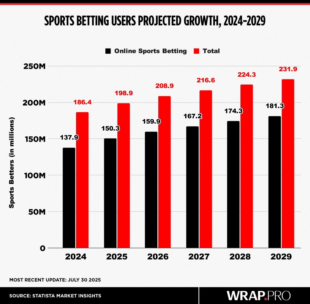 The sports gambling industry made over $70 billion in revenue in 2024, with $41 billion coming from online sports betting, according to data from Statista. In 2024, there were 137.9 million online sports betting users active nationwide, with that figure expected to grow to 181.3 million in 2029.